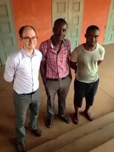 We flew to Accra taking all of the server and client equipment with us. After a long and nervous wait for all of the equipment to come off the plane safely the teaching and support staff from the school helped us to transport all of the equipment up to Akropong. It was nice to get away from the heat and humidity of the capital and up to the more pleasant climate in the mountains. Akropong is a beautiful place with fantastic scenery and I was feeling very lucky to be there.